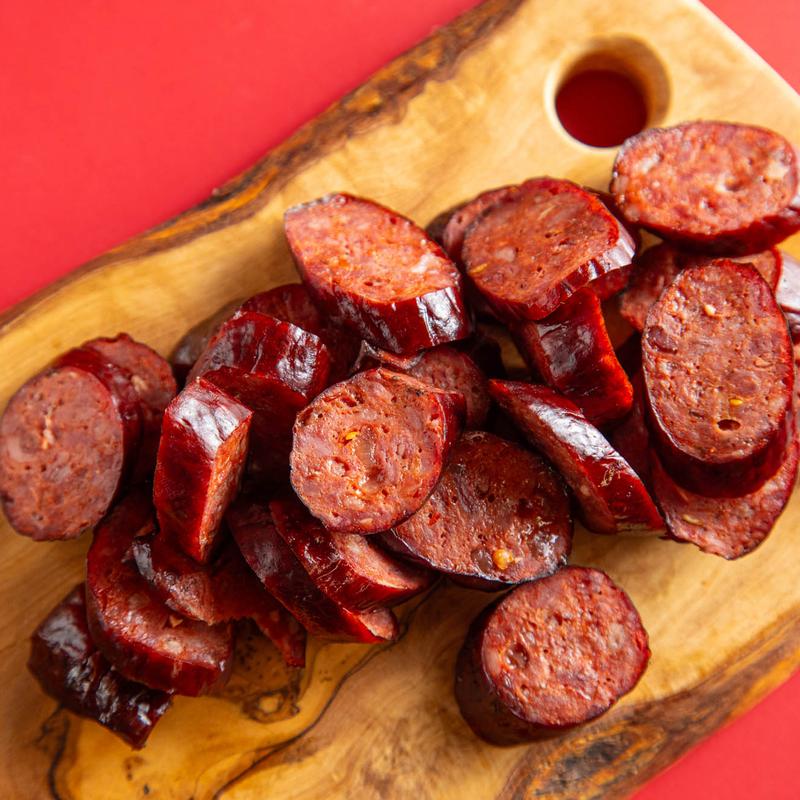 Mini fresh buns with smoked sausage, mango habanero slaw, crushed Zapp’s, cilantro & jalapeños