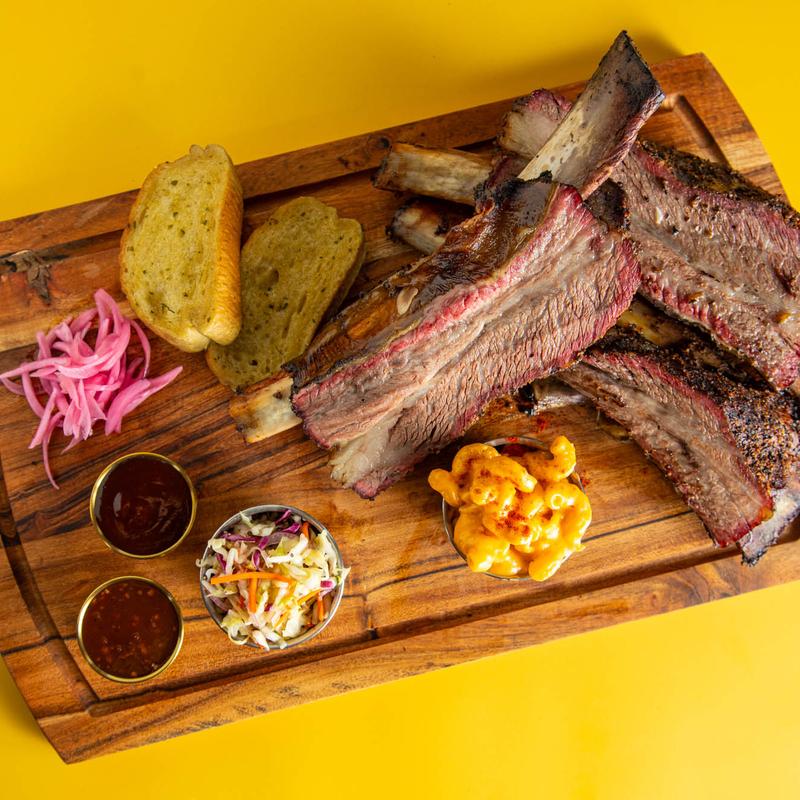 Sliced or chopped, slow-smoked brisket served with BBQ sauce